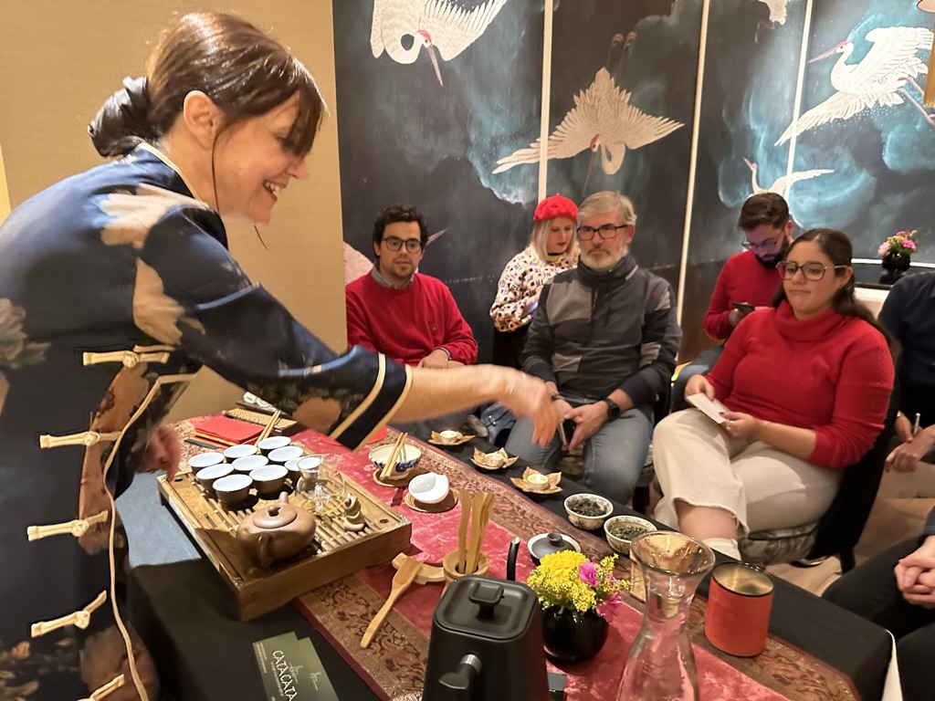 La historia del Gong Fu Cha es menos conocida que la ceremonia japonesa del té «Chanoyu», pero comparte hospitalidad y delicadeza. En esta ceremonia, la anfitriona acoge con alegría a los invitados, quien demuestra su maestría preparando el té con esmero y dedicación para lograr un sabor óptimo que apacigüe el alma.