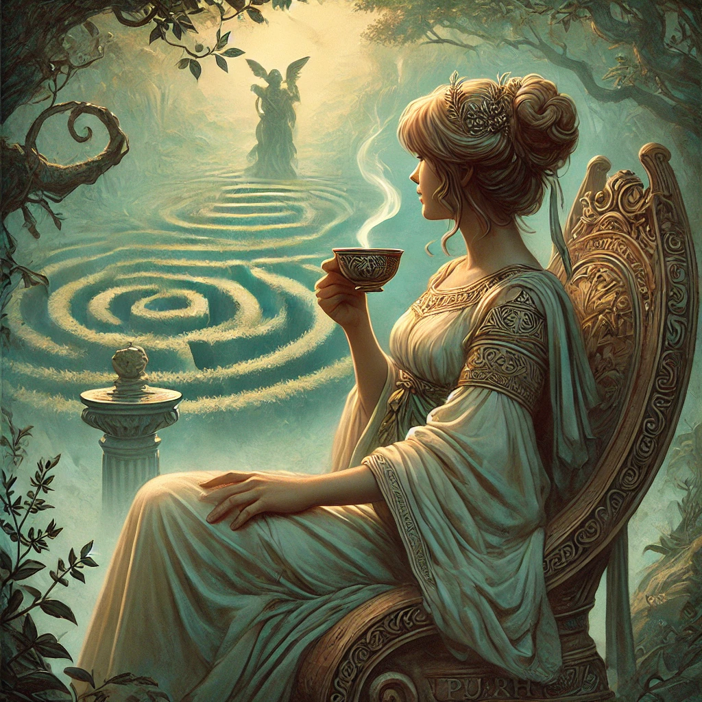 Inspirados por este poderoso mito de pérdida y renovación, hemos creado «Consuelo de Ariadna», un blend único que combina: Pu-erh, tomillo y salvia. Esta mezcla mas que una bebida es una experiencia que evoca el viaje emocional de Ariadna y, por extensión, el nuestro propio.