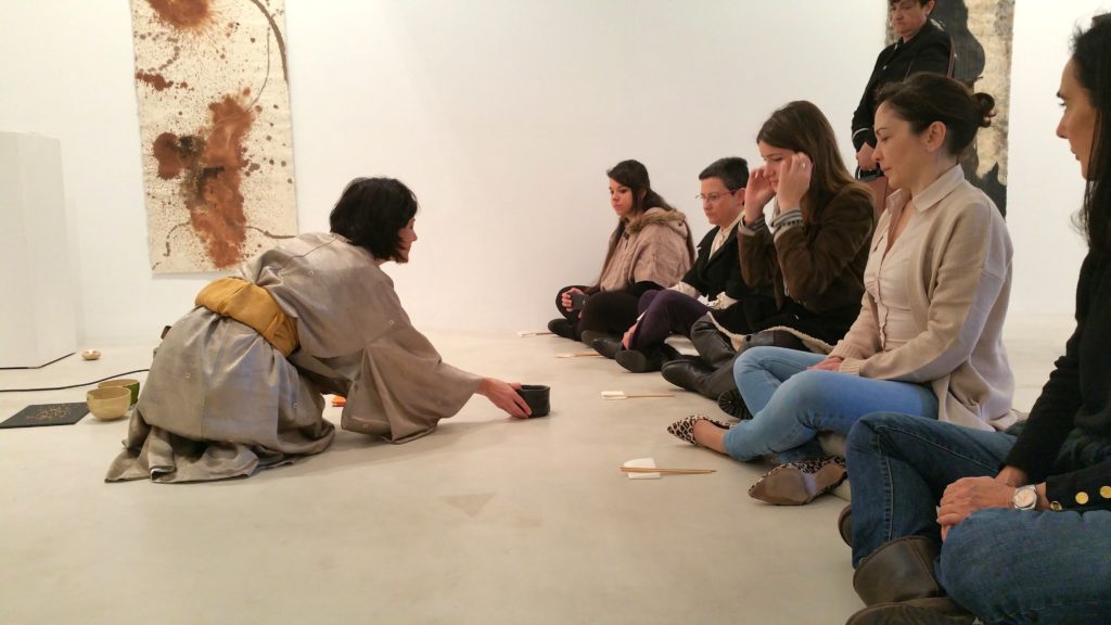 Cuando la Galería Michel Soskine nos propuso clausurar la exposición “Earth & Sky” de Naoaki Sakamoto con una Ceremonia Japonesa del té, sentí que una vez más el Universo se confabulaba para situarme ante una nueva señal del Chado ó Sado “El camino del té”, uno de los «Caminos de vida» de la cultura japonesa, tan completo que en su desarrollo acoge a otros tantos: el camino de la energía y la armonía Aikidō, el camino de las flores Ikebana, el camino de la caligrafía Shodō, el camino de la pintura Kaiga… y es que todos estos caminos están presentes en una Ceremonia, por eso entre otras muchas cosas, el Cha no yu es tan significativo.