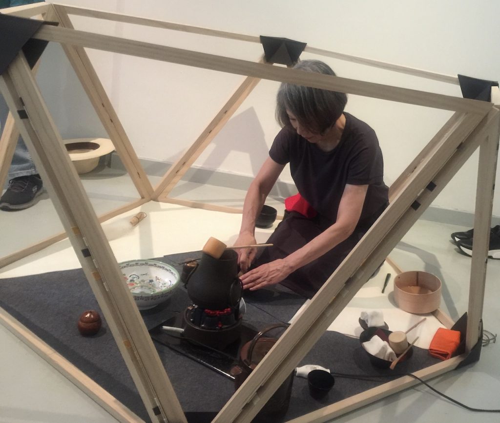 Fue ese espacio, al que la artista artista japonesa Okamoto Motoko denominó: “Cha-gu” el recreado hace muy poquito en Madrid. Un pequeño habitáculo, una obra de arte en sí misma, escenario efímero para posibilitar la performance del Cha no yu. Diminuto, esencial, revelador, y tan en consonancia con este momento…