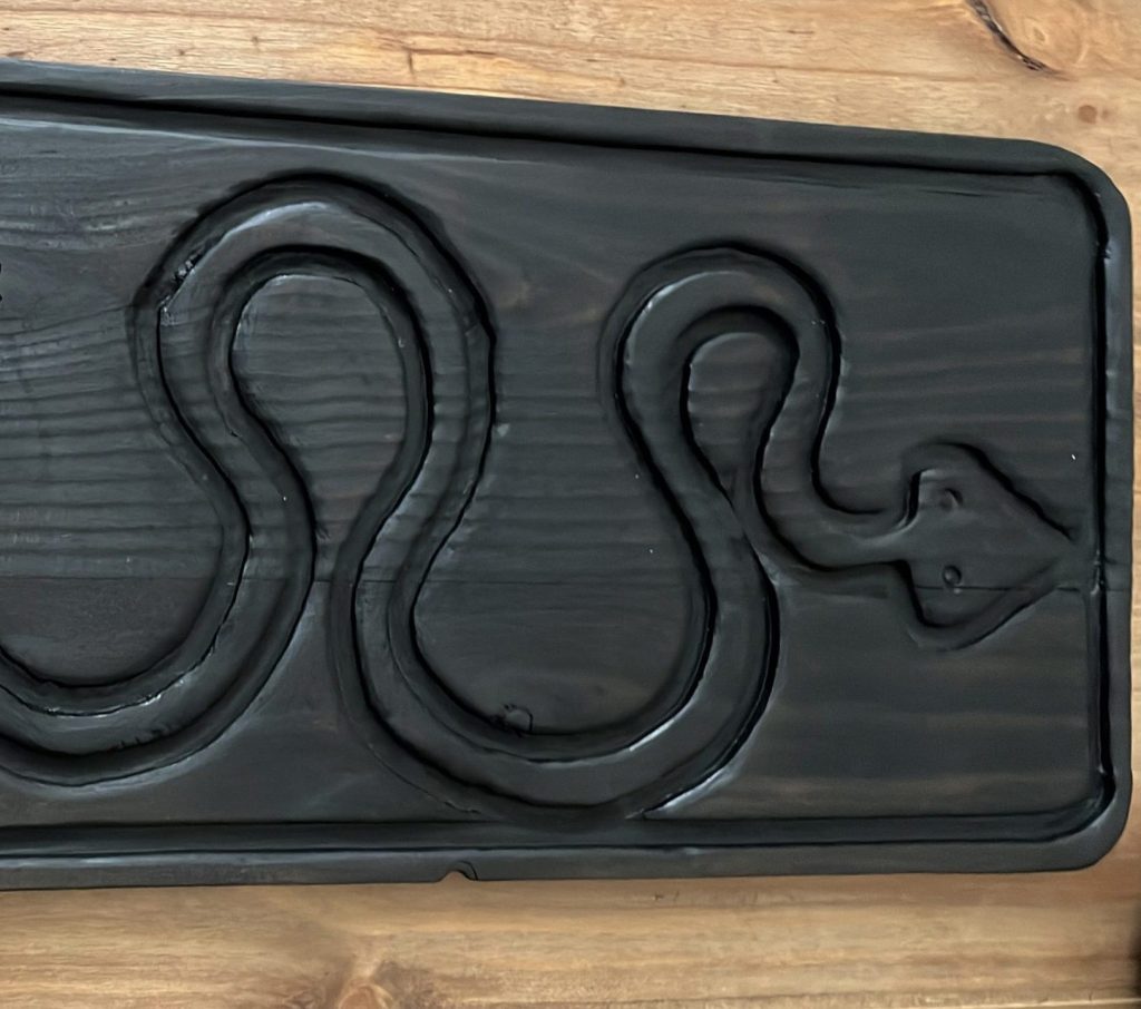 La madera de la bandeja, ya de por sí transformada por el fuego, acoge el símbolo de la serpiente como si se tratara de un emblema silencioso de poder sutil. Una presencia que observa, intuye e invita. En el Sencha-dō, donde el gesto lento y la atención al detalle son una forma de meditación activa, esta bandeja encarna la sabiduría quieta de los objetos bien elegidos.