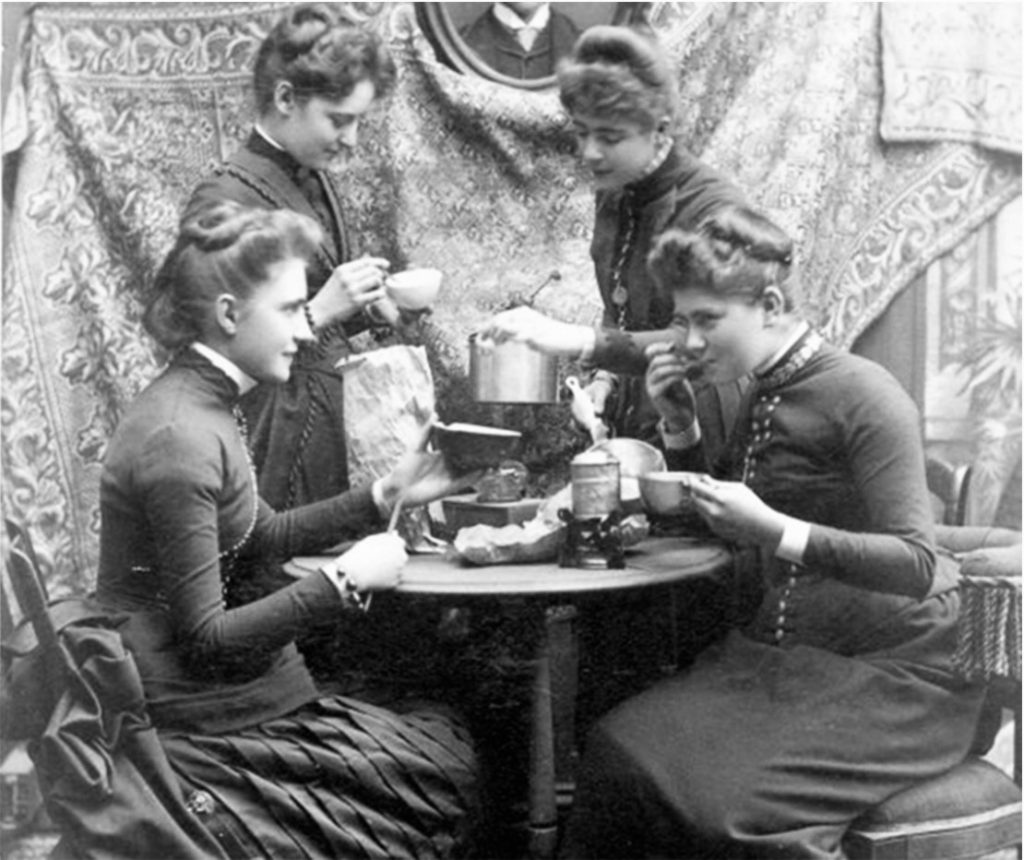 Los hombres, que  bebían café en los coffee house, fueron abriéndose poco al poco  al té. Mientras que  las mujeres difundieron rápidamente su consumo, incorporando en sus reuniones el té como principal aliado. Al acabar el s.XVIII casi todo el mundo bebía té en Gran Bretaña.