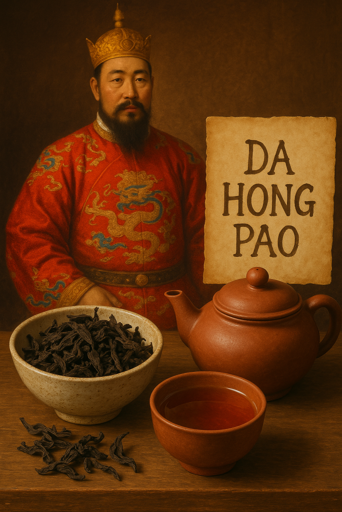 La leyenda cuenta que durante la dinastía Ming, la madre del emperador enfermó gravemente. Ningún médico lograba curarla… hasta que alguien le ofreció infusiones de un té proveniente de los acantilados de Wuyi. Milagrosamente, la emperatriz sanó. Agradecido, el emperador mandó cubrir los árboles de los que salían aquellas hojas con grandes túnicas rojas, símbolo de protección y respeto.